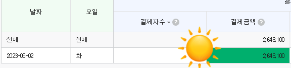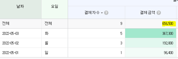 글을 쓰면서 작년 같은 시기 매출을 찾아보니 2022년 5월 1~3일 총 매출은 656,500 이었네요!