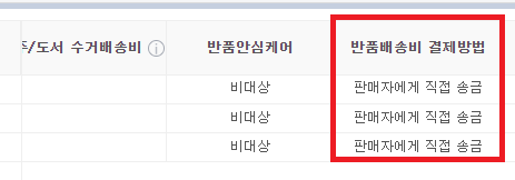 2) 반품배송비 결제방법이 "판매자에게 직접 송금" 이면 반드시 계좌로 입금