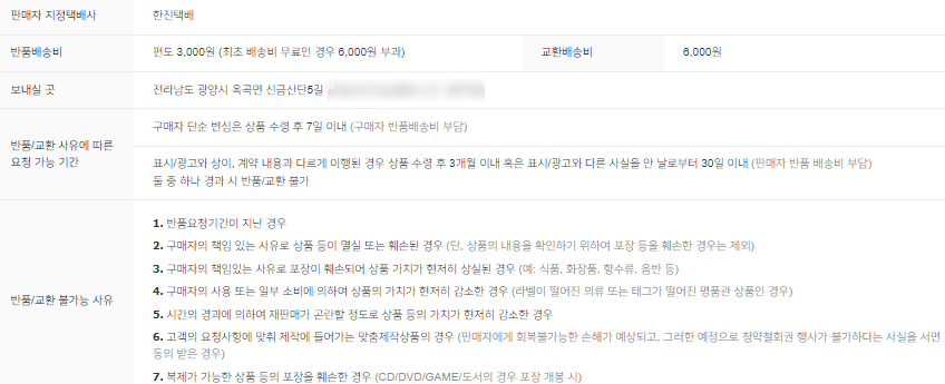 14,700 x 3.63% = 533원 14,700 x 2% = 292원 여기까지는 저희가 익히 아는 상품 수수료 입니다. 하지만 아래 수수료가 하나 더 있죠? 배송비 3,000 x 3.6% = 108 원, 배송비에도 3.6%의 수수료가 붙습니다. 많지는 않지만 은근히 불편하게 만드는 수수료 입니다. 반품요청시 상품 받으면 반품완료? 아닙니다. 반드시 반품 배송비를 받으셔야 합니다. 당연하지라고 생각하시나요? 환불 시 반품 배송비는 자동 차감될것이라고 생각하고 정말 많은 분들이 '반품 배송비'도 받지 않고 '반품 완료'를 누르십니다. 오픈톡방이나 카페에서 심심지 않게 꾸준히 있으십니다. 정말로... 그럼 반품의 기준 보는법 간단하게 알려드리겠습니다. 딱 2가지만 보면 됩니다.