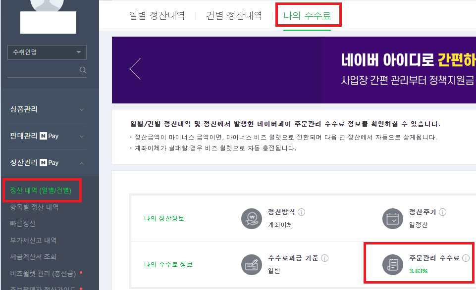 국세청에 아무런 자료가 없는 순수한 나는 '일반' 으로 시작을 합니다. 시작도 어려운데 수수료도 제일 높은 "3.63%" 입니다. ㅠㅠ처음부터 잘 팔기라도 하면 덜 억울하겠네요. 나의 수수료는 아래위치에서 확인이 가능합니다.
