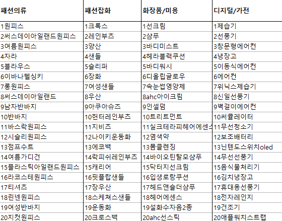 7월 5주차 네이버 쇼핑 인기검색어 TOP20