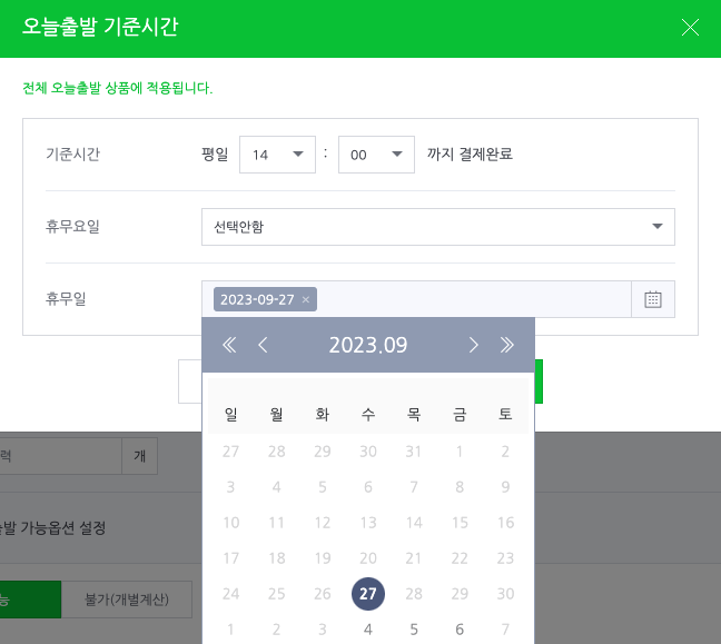 그럼 오늘 출발 상품의 휴무일을 설정하는 방법에 대해 알아보겠습니다.