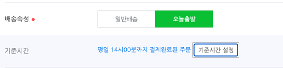 3. 배송 항목의 배송속성-기준시간 설정 클릭합니다.