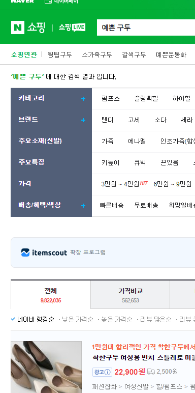 구두 검색량 9,821,971 / 예쁜구두 검색량 9,822,035 (약간의 오차)